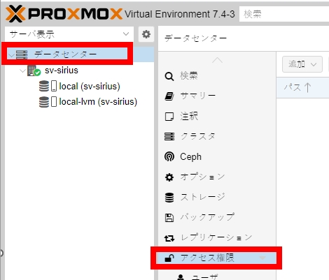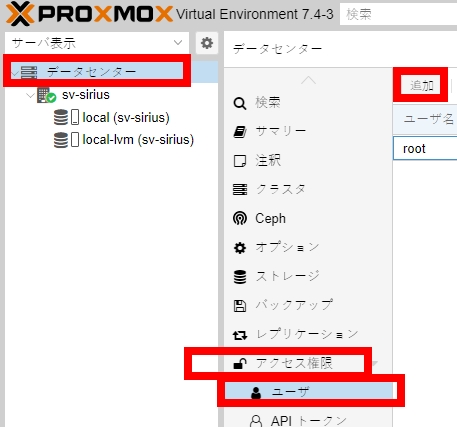 - Proxmox7.4のインストール後に行う初期設定(管理者ユーザー追加)