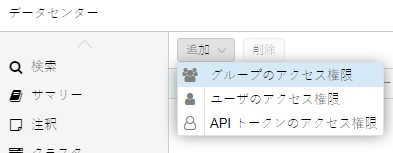 データセンター > アクセス権限 > グループ で「追加」ボタン