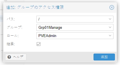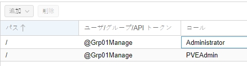 - ロール: PVEAdmin, Administrator