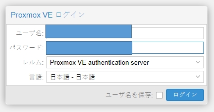レルム:「Proxmox VE authentication」を選んだ場合
