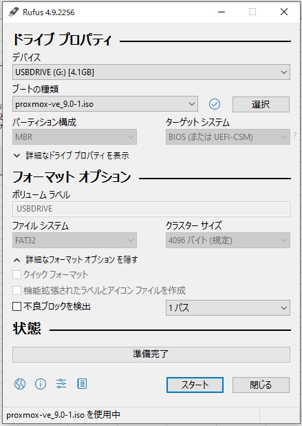 ・Dellの中古PCにProxmox9.0 をインストールする手順を知りたい。