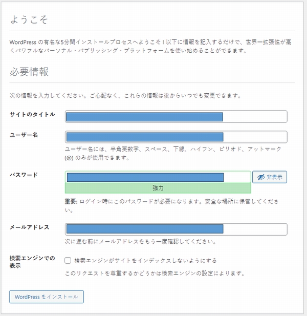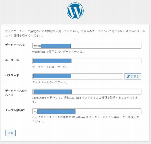MariaDB [(none)]> grant all on wpdb.* to '●●●ユーザー名@'localhost' identified by '★★★パスワード'; Query OK, 0 rows affected (0.001 sec)